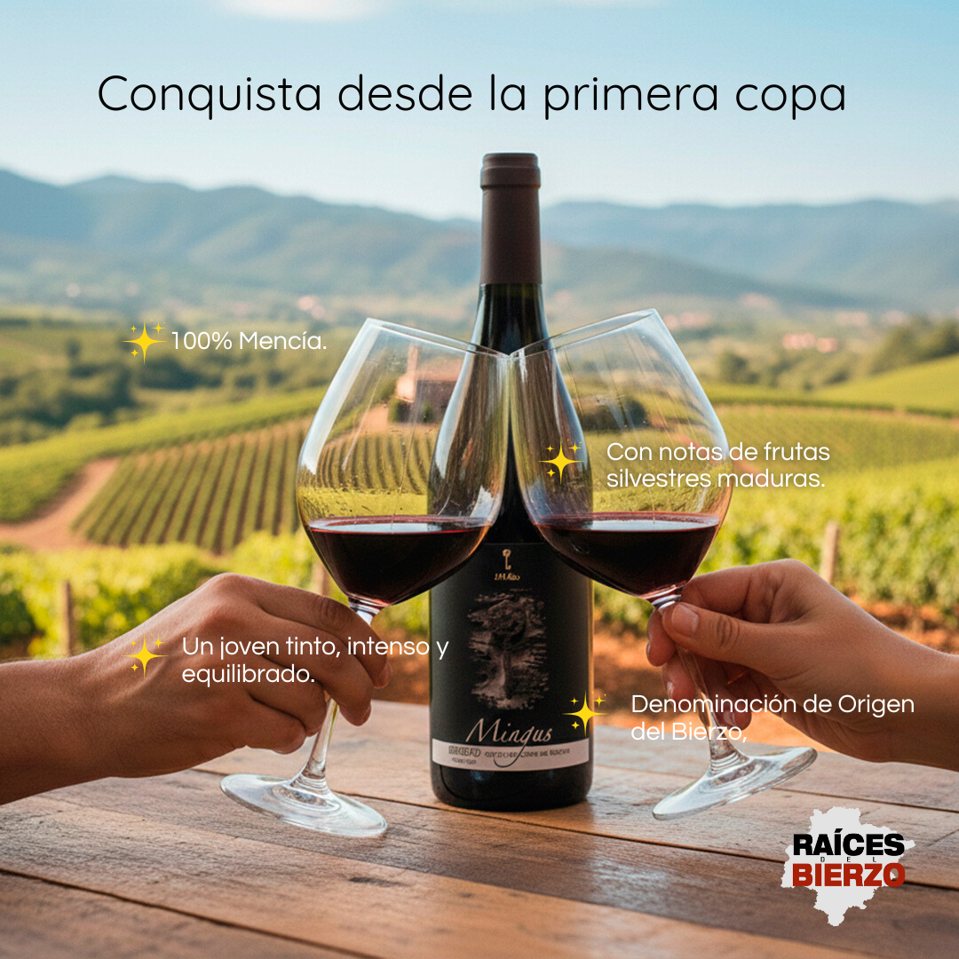 Elaborado mediante vendimia manual y fermentación espontánea con levaduras autóctonas, Mingus respeta al máximo el fruto y el territorio.