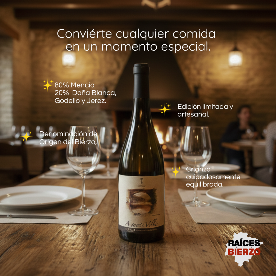Elaborado mayoritariamente con Mencía, junto a variedades blancas tradicionales del Bierzo (Godello, Doña Blanca y Palomino), sigue una vinificación histórica que aporta complejidad, frescura y una personalidad única. Su reserva en barricas de roble francés refina el conjunto sin ocultar el carácter del viñedo.